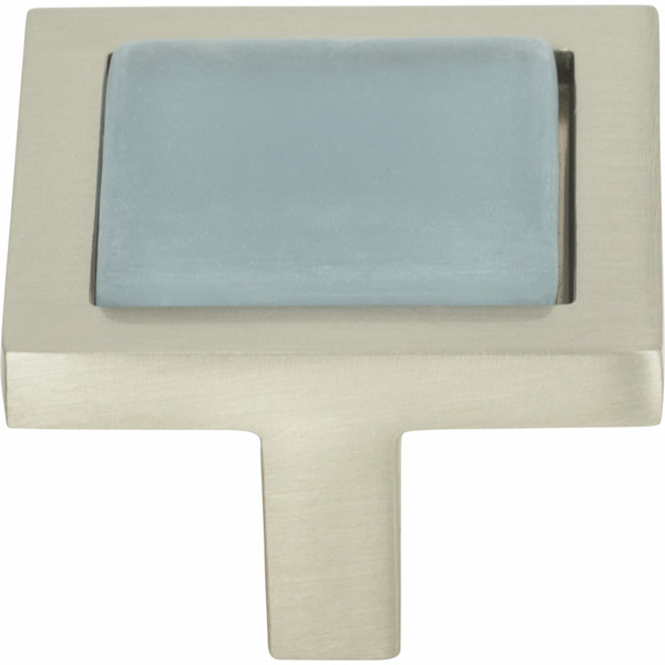 Atlas Homewares 230-BLU-BRN Spa Blue Square Knob 1 3/8" Brushed Nickel