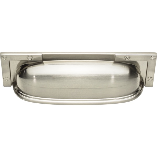 Atlas Homewares 382-BRN Campaign 3 3/4" Center to Center Cup/Bin pull Brushed Nickel UPC: 782808244786
