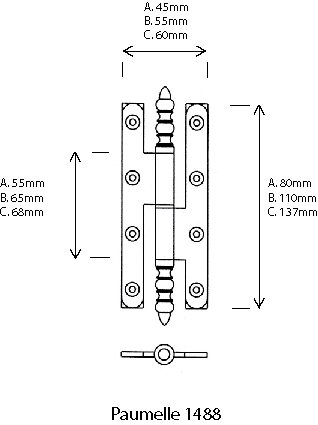 - Item Description: Paumelle Hinge/ Round end Leaves Packaged with wood screws Sold individually