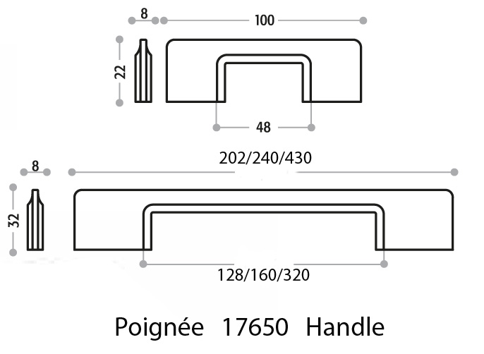 Bouvet 17650-320-000 Cabinet Pull Center-to-Center:320mm Length:430mm Width:8mm Projection:32mm Chrome- Brand: Bouvet