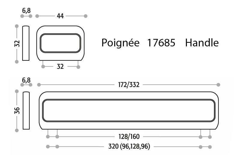 Bouvet 17685-032-000 Cabinet Pull Center-to-Center:32mm Length:45mm Width:6mm Projection:32mm Chrome- Brand: Bouvet