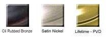 - Available in Oil Rubbed Bronze, Satin Nickel or PVD-Life time finish.