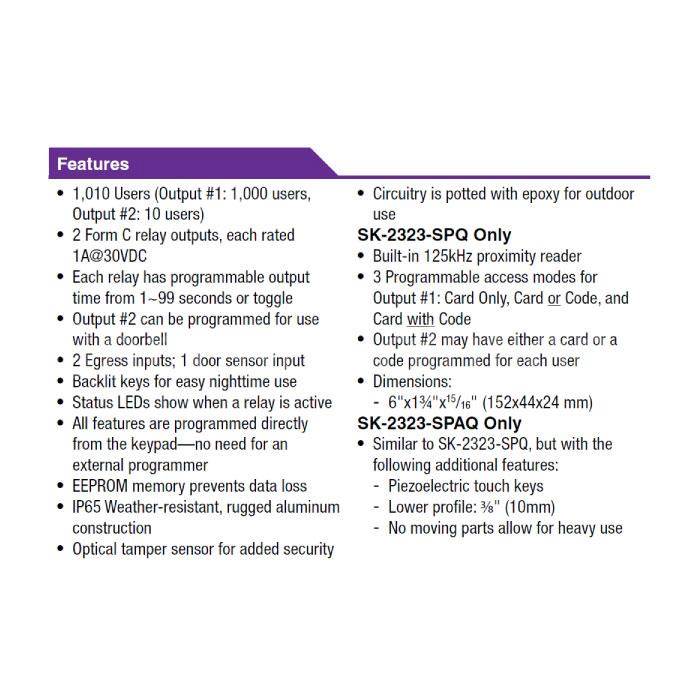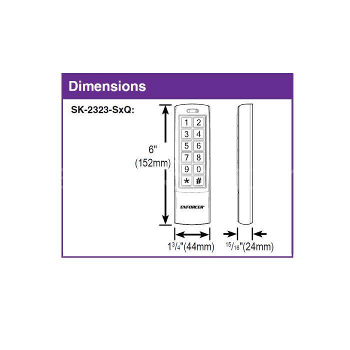 SECO LARM SK-2323-SDQ Mullion Style Outdoor Keypad- Description: Standard Keypad, 1010 Users, 12-24VAC/VDC