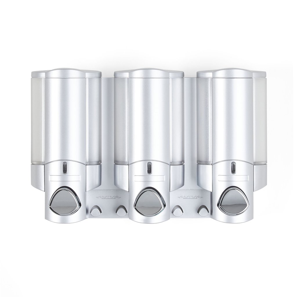 The AVIVA series of soap and shower dispensers are the most beautiful solution for bath and shower organization. An inspired combination of Design, Style and Practicality. Our 3 Chamber model includes integrated hooks to neatly store razors and accessories!