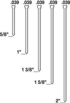 - Offers significant holding power while leaving a much smaller indent than an 18 gauge brad