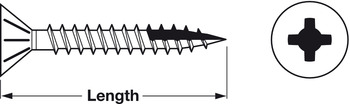 Hafele 010.73.951 Zip-R Screw, Flat Countersunk Head, #2 Phillips, with Nibs Steel, #6 x 2", Partial Thread, Zinc