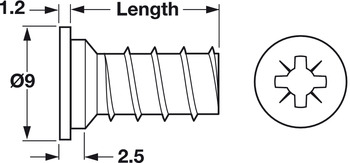 - Area of application : for screwing into wood, for Variant drawer runners, cruciform mounting plates, cabinet connectors and connecting fittings