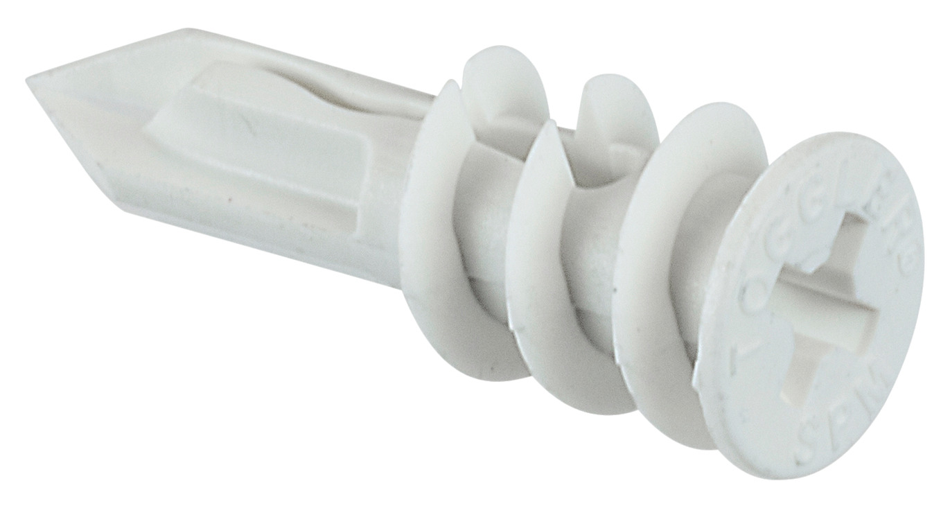 - Area of application : These one-piece light-duty anchors are designed for fast installation into 3/8" - 5/8" wallboard/drywall.Minimum screw length: 1-1/14" + thickness of item being anchoredAccepts #6 screw