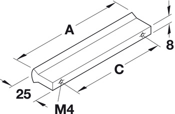 Dim. A = 1,000 mm is supplied with 3 threaded holes.Data Sheet