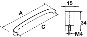 Hafele 106.69.277 Pull, handle, Studio, H1330, zinc, polished chrome, 101ZN07, M4, center to center 192mm