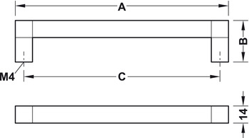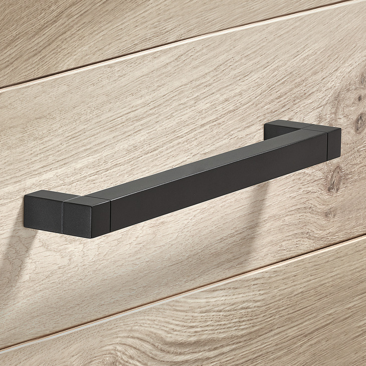 Hafele 106.70.030 Handle, D handle, aluminum Design Model H1935, Brushed nickel plated, dim. A: 142 mm, dim. B: 34 mm, dim. C: 128 mm