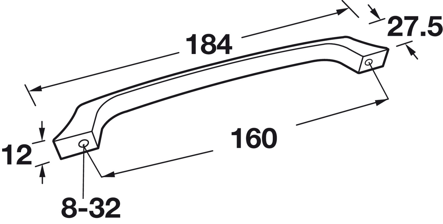 Hafele 111.95.308 Handle, Elite, zinc, black,109ZN65, 8-32, center to center 160mm, includes 1" screws