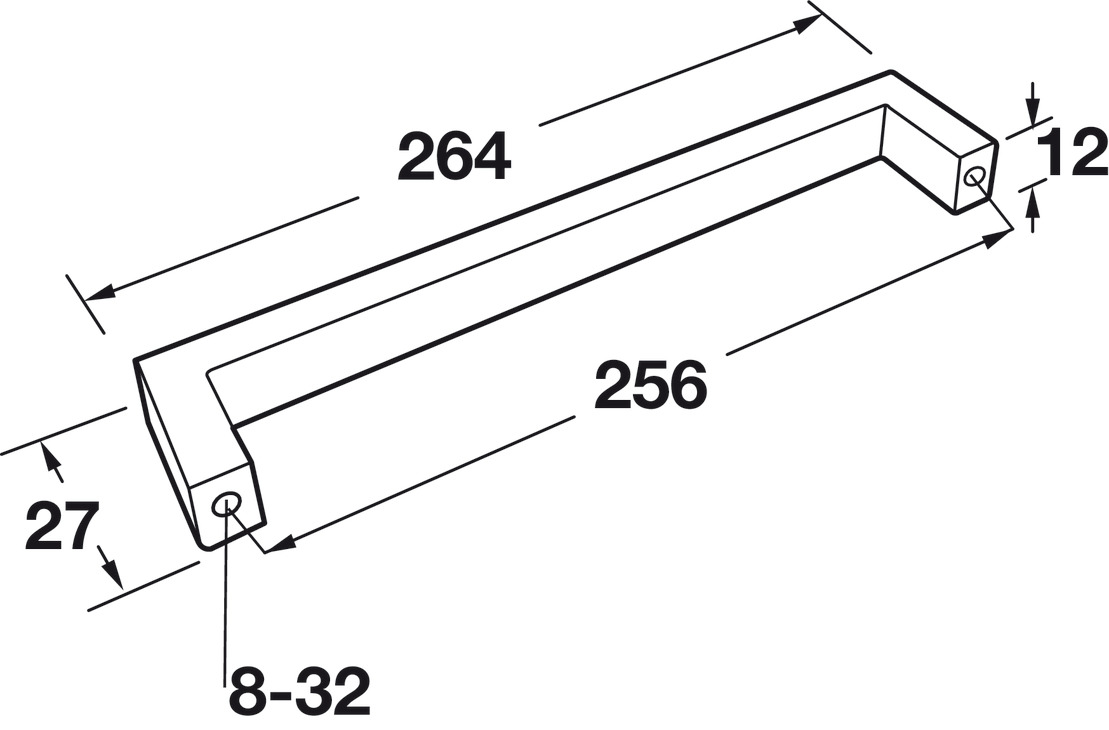 Hafele 111.95.312 Handle, Modern, zinc, black, 109ZN65, 8-32, center to center 256mm, includes 1" screws