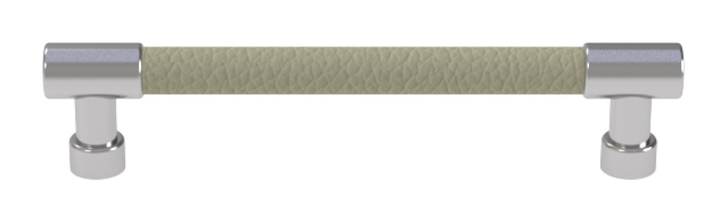 Product Title: Handle, Zinc, Faux Leather, TAG Traditional, Chrome/oyster, 128 mm CTC