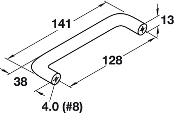 Hafele 114.22.390 Handle, Polyamide HEWI, Dim. A: 141 mm, dim. B: 38 mm, dim. C: 128 mm, bright jet black