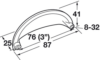 Hafele 133.50.151 Cup handle, Amerock zinc, polished nickel, 112ZN73, 8-32, center to center 76mm, includes 1" screws