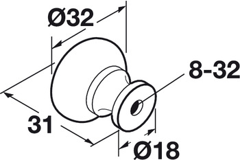 Product Title: Knob, Brass, Hollow Ø32 mm, Stainless steel look