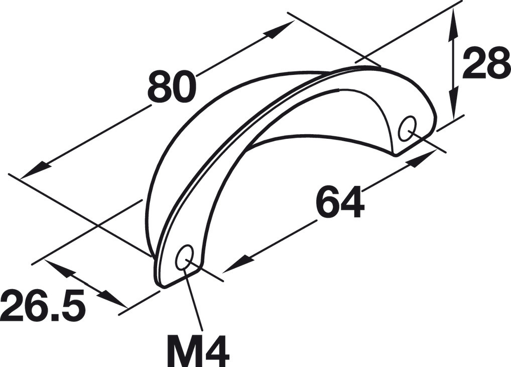 Cup Handle, with screws, zinc, matt gold, 146ZN23, M4, center to center 64mm, with 2pcs. M4 x 25mm + 2pcs. 45mm screws: Hafele part# 151.40.500