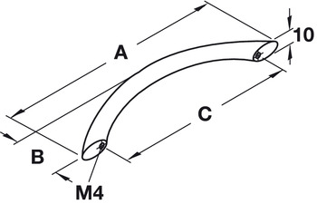 Product Title: Handle, Steel, Ø 10 mm, Dim. A: 112 mm, dim. B: 30 mm, dim. C: 96 mm, matt black, RAL 9017