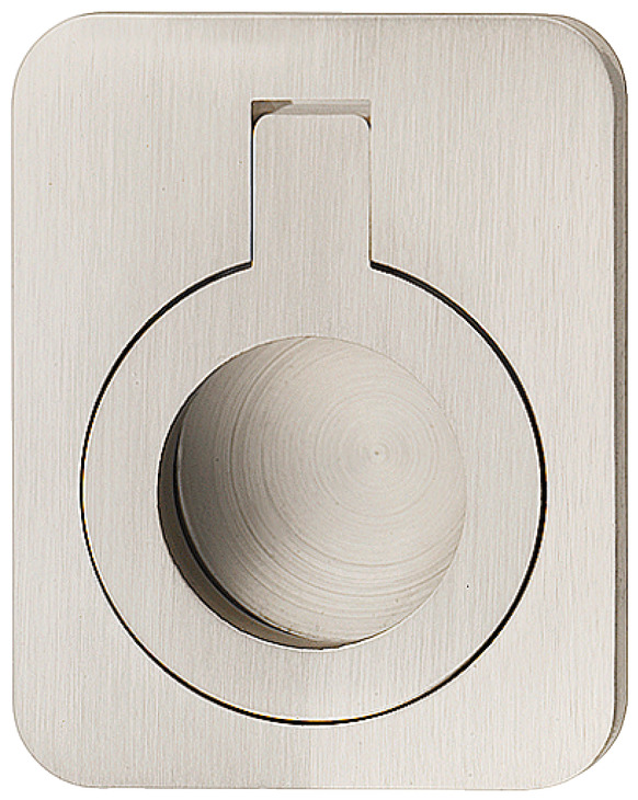 Product Title: Inset Ring Handle, Brass, Campaign Collection, 47 x 60 mm (W x H), Brushed nickel