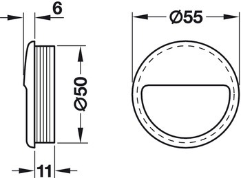 Category: Inset Handle, Plastic, Ø55 mm, Black
