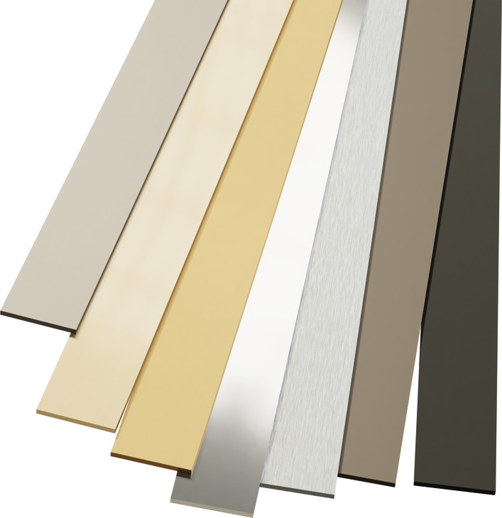 Product Title: Cabinet Accent Strap, 3/4" wide, Aluminum, 3/4" x 1/16" x 72", Stainless steel