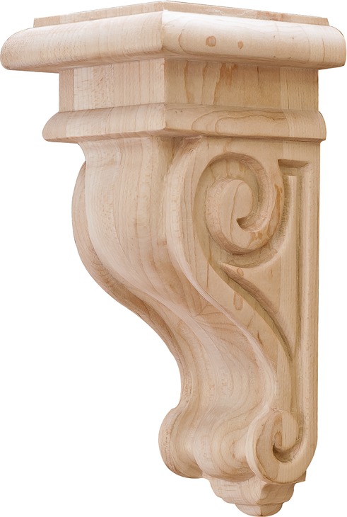 Product Title: Corbel, 6" x 2 7/8" x 3" (H x W x D), Scroll Collection, Maple