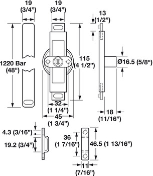 Hafele 223.63.355 Wardrobe/Overhead Storage Lock Timberline- modular removable core locking system, Vertical