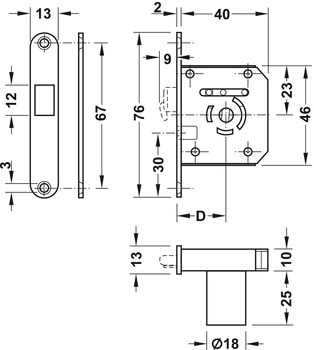 Hafele 230.36.600 Hook Bolt Mortise Lock, Backset 22 mm For combination with Symo cylinder removable core, Nickel-plated