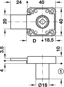 Category: Deadbolt Rim Lock, Häfele Symo, backset 25 mm, bolt travel 22.5 mm, For combination with Symo cylinder removable core