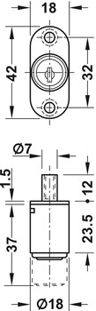 Category: Push-Button Cylinder, 18 mm, with Locking Pin, Standard Profile, Keyed Different