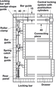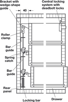 Drawer Component, for Spring Catch (choose one):Built-In gang locking system, Zinc-plated 237.42.038 Click to order