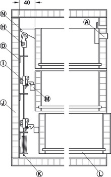 - Installation : for screw fixing, with height adjustable spring catches, rod guides for locking bars