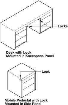 - Area of application : Permits locking from the front either in a fixed position in a lock strip or in a drawer front, in which case it travels with the drawer.