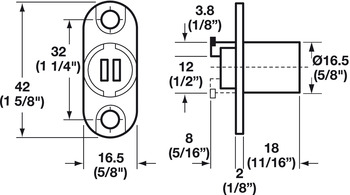 Timberline - modular removable core locking system, Dim. X: 17 mm (11/16"), application 3/4" thick slides