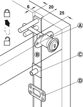 Hafele 234.98.600 Central Locking Rotary Cylinder Lock, with Two Wings, Symo 3000 For combination with Symo cylinder removable core, Lift: 12 mm (15/32")