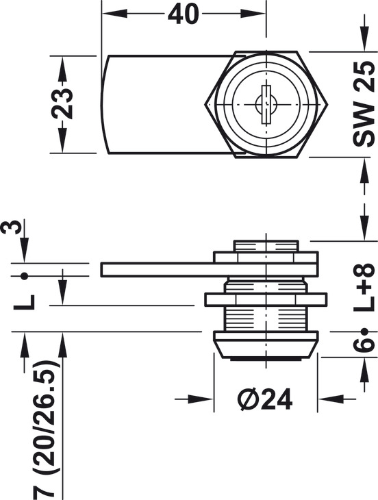 Product Title: PIN code lock, With fixed plate cylinder, with straight locking cam, Nut fixing, standard profile, 60-001-keyed alike, closure direction 180°, 1 (2–8), door thickness ≤20 mm, thread length 26 mm