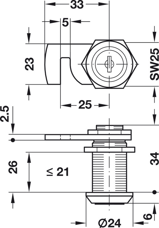 Product Title: PIN code lock, With fixed plate cylinder, with hook cam, Nut fixing, standard profile, 60-001-keyed alike, closure direction 180°, 1 (2–8), door thickness max. 21 mm