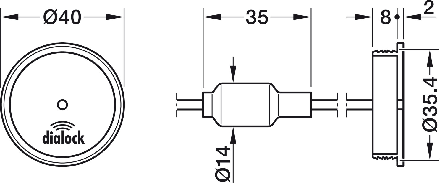 - Installation : visible installation from the outside when recess mounted in 35 mm cup drill holeconcealed installation from the inside when recess mounted in 40 mm cup drill hole, distance between to of antenna to outside of furniture max. 5 mm