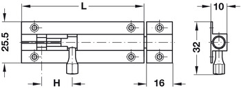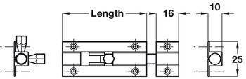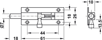 Category: Barrel Bolt, Brass, Chrome Plated, Screw-Mounted, Length: 60 mm