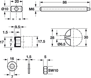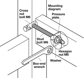 - 4 M6 cross-nut bolts, with center thread