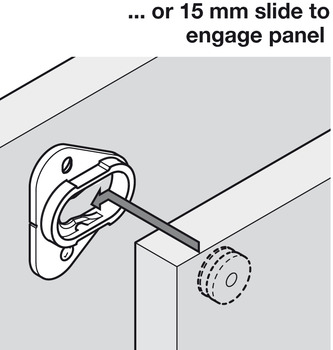 - Engage the buttons in the connector and slide the panel down by 15 mm until button-fix™ goes ‘click’, can also be configured sideways