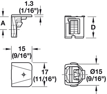 - Area of application : for shelf thickness from 16–19 mm, to additionally secure shelf against toppling, increased stability in furniture when using the Tab 15 for screw fixing