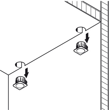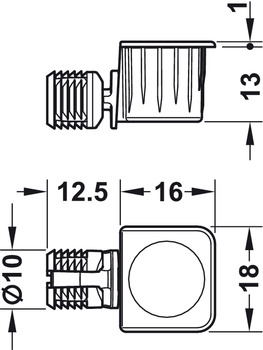 Category: Cabinet connector, Häfele Ixconnect Tab 15 T, For tool-less installation of shelves, For wood thicknesses: From 18 mm and above, nickel plated