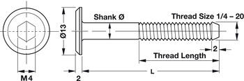 - Version : Flat head Ø13 mm with M4 hexagon socket