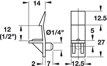 Category: Shelf Support, with Plug and Spring Clip, Ø1/4", For wood shelves 1/2" thick, Beige
