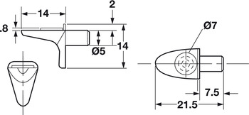 Category: Glass Shelf Support, Ø5 mm, Nickel-plated