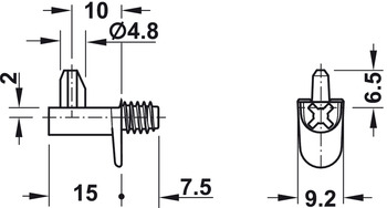- Threaded pin for tightening into a drilled hole with Phillips #2 driver