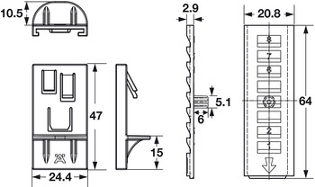 Category: Mullion Shelf Clip, Adjustable, Plastic, Ø 5mm,