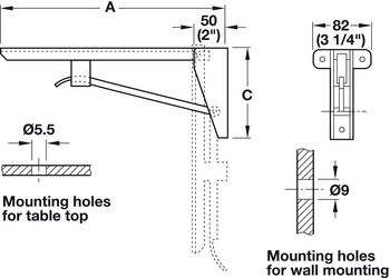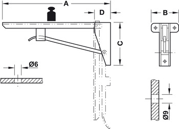 Product Title: Folding Table Bracket, Hebgo, Light-Duty, Steel, Dimensions (AxBxC): 480 x 82 x 152 mm, gray primed